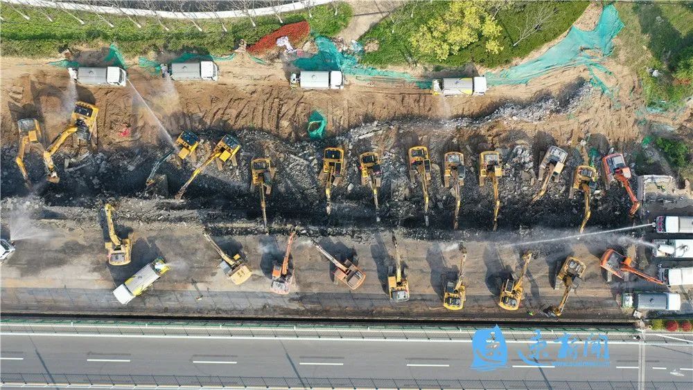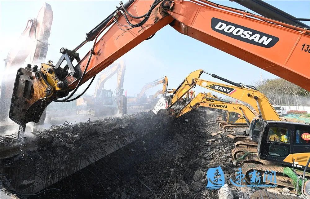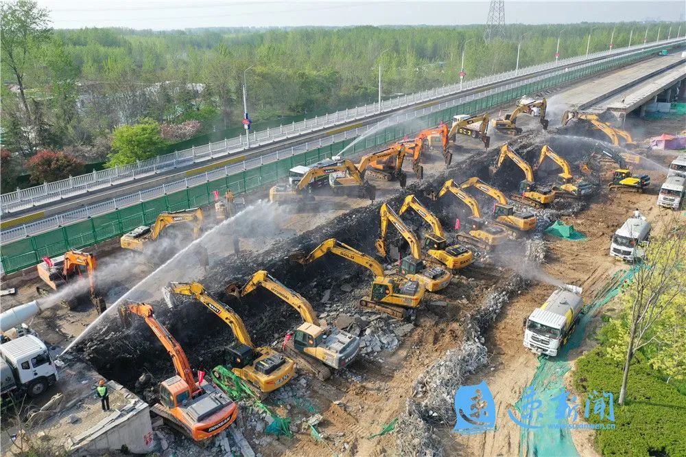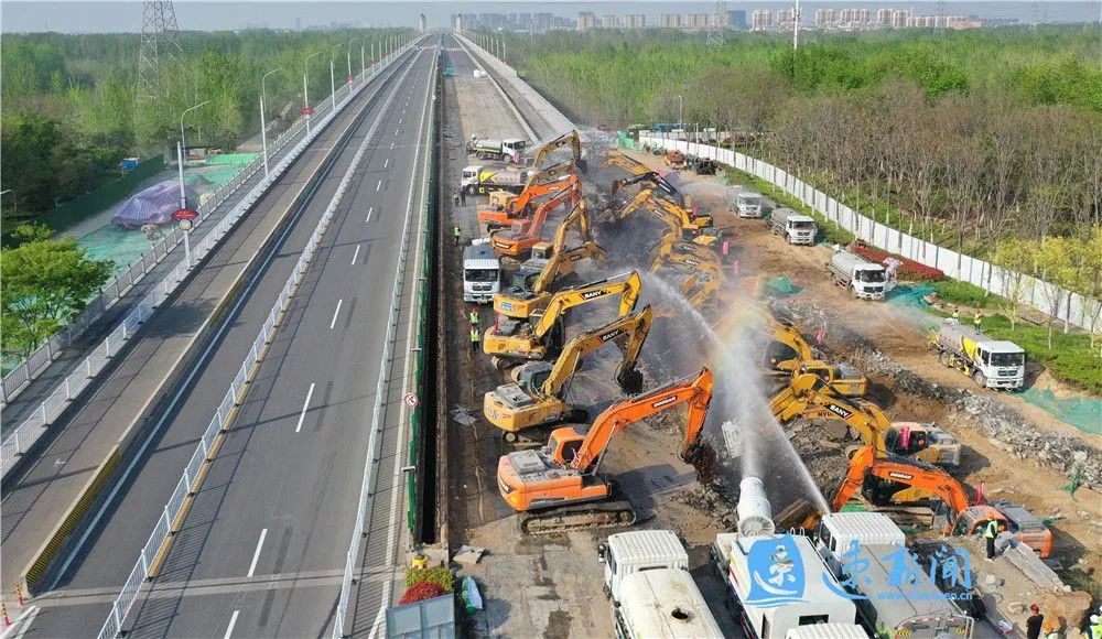 4月11日,在宿迁市区迎宾大道二期工程运河文化大桥南侧,20多台挖掘机正在施工,其他路段也是机械遍布、阵阵轰鸣,大型设备“虎”力全开,展现出一派忙碌而有序的景象。