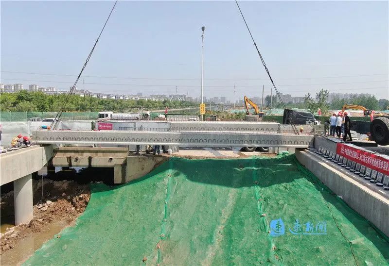 5月15日,北京路快速化改造工程1标段古黄河跨河桥梁成功完成首片板梁架设,拉开了北京路项目建设新序幕。