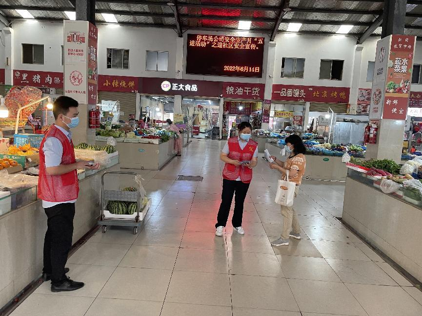 6月14日下午,停车场公司党支部联合府前社区党委开展安全生产宣传“进社区”活动。此次活动主要在社区人流量密集的菜场及小区广场周边开展,宣讲工作人员为菜场商贩、社区民众详细讲解了安全相关知识,切实增强人流密集场所及社区居民的安全防范意识。