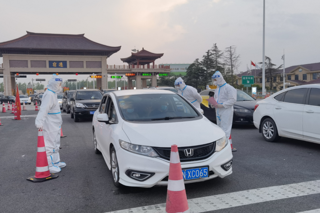 还记得那时,天刚亮,范金胜和李健便提前到达宁宿徐高速公路宿迁主线收费站,穿上防护服交接班后,便自觉站到指定岗位。八人一组的队伍,各自都有明确的任务分工,每有一辆车驶入出站口进入检查区域,都会有相应的防疫志愿者主动上前仔细筛查,发现高风险地区来宿车辆便主动迎上去,检查车上人员健康码和行程码,查验48小时内核酸检测报告。