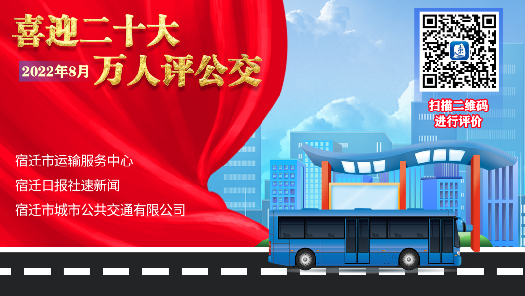 为继续以公交新变化应对市民新需求、以服务新提升惠及群众大民生,让每一位生活在宿迁的市民可以共享城市发展的便捷,让每一位来到宿迁的游客可以深刻感受到公交服务的周到与人性化,8月1日,宿迁市运输服务中心、宿迁日报社速新闻、宿迁市城市公共交通有限公司特联合开展“喜迎二十大 万人评公交”活动,邀请广大市民对宿迁城市公交运营情况作出客观评价、提出宝贵意见和建议。