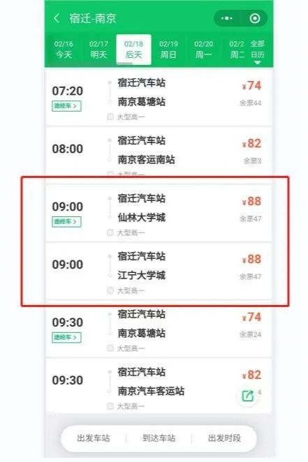 2月18日、2月19日,宿迁汽车客运站推出直达南京仙林大学城、南京江宁大学城两条班线,宿迁的学子们可直接享受从家到大学城的一站式体验。