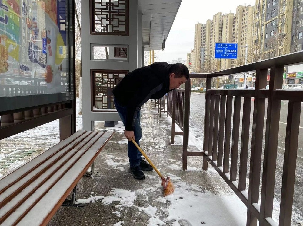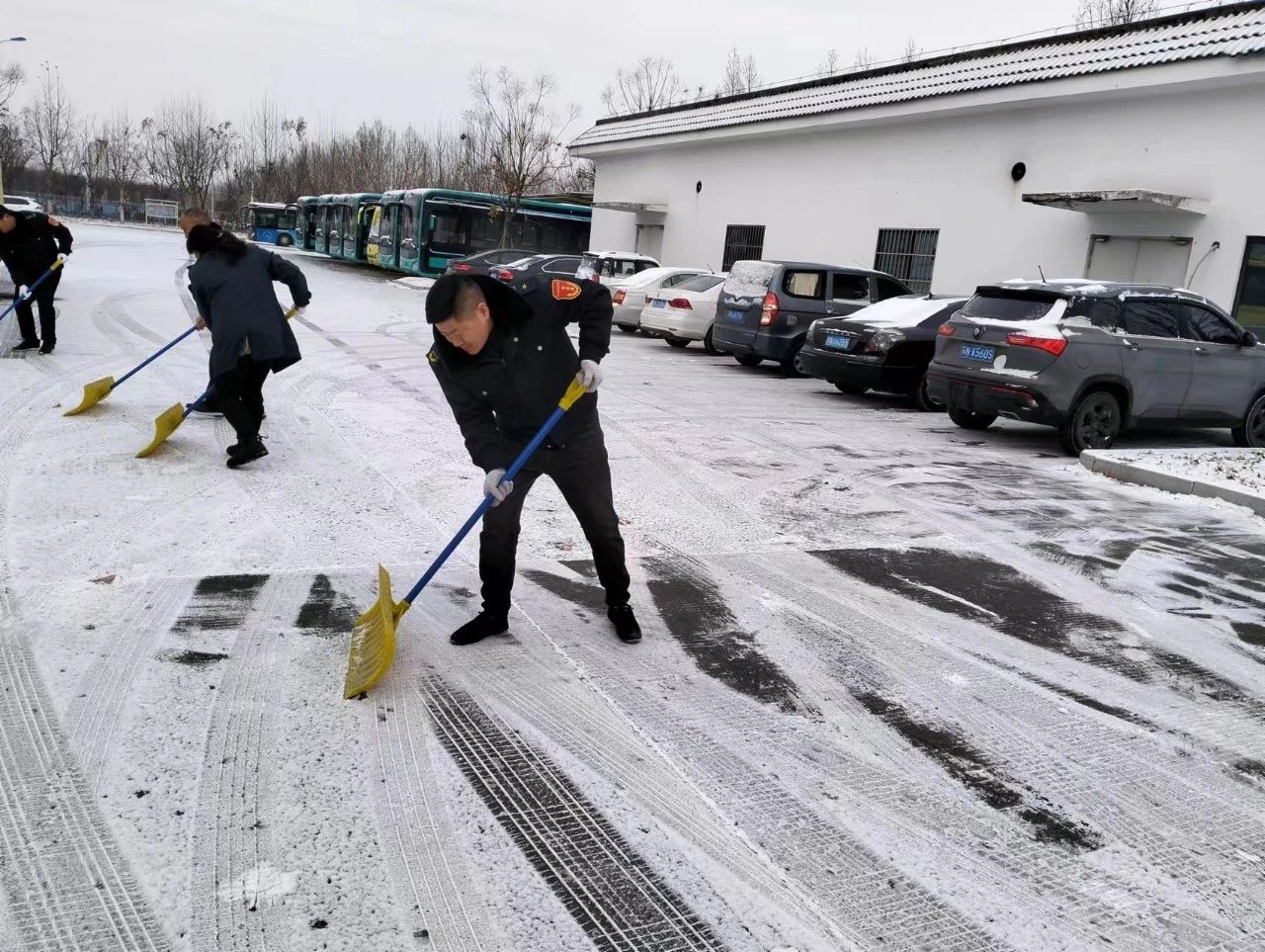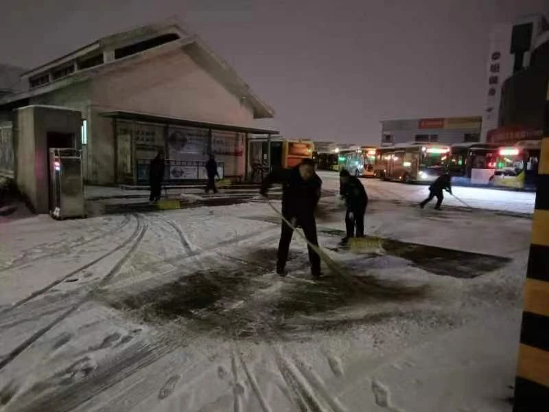 各公交调度站积极响应职工扫雪除冰、热火朝天用行动融化冰雪保障车辆正常进出