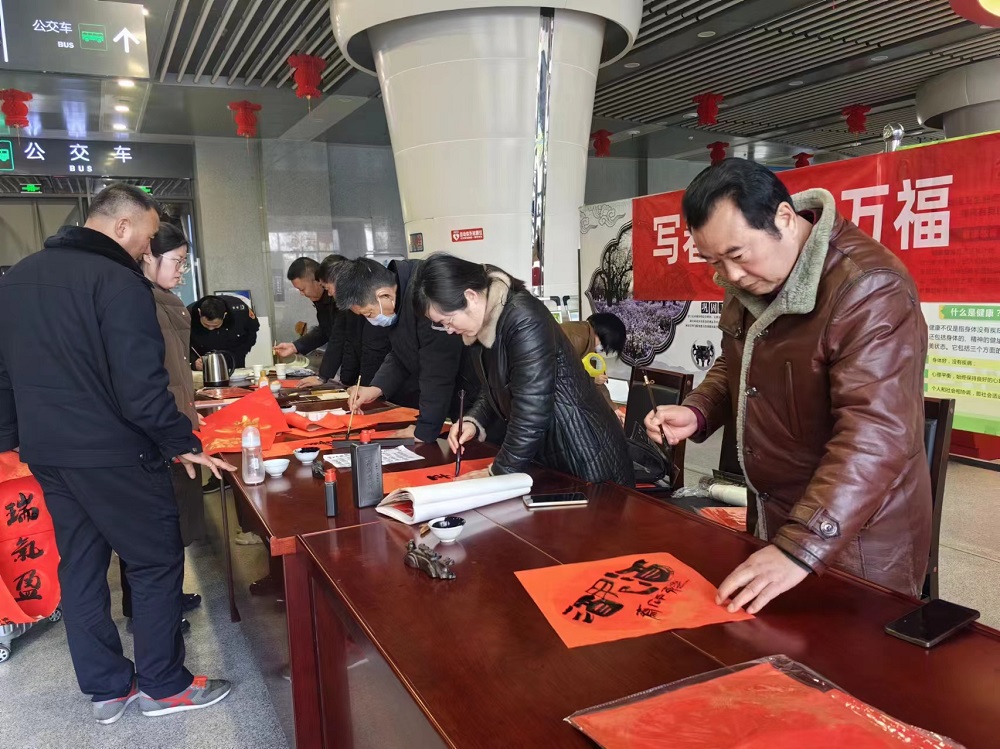 为营造和谐、欢乐的春节氛围,进一步丰富职工文化生活,推进企业文化建设,2月7日,公交公司组织开展“翰墨飘香迎新春 手写对联送祝福”活动,公司书法爱好者为市民、职工书写春联,赠送“福”字。
