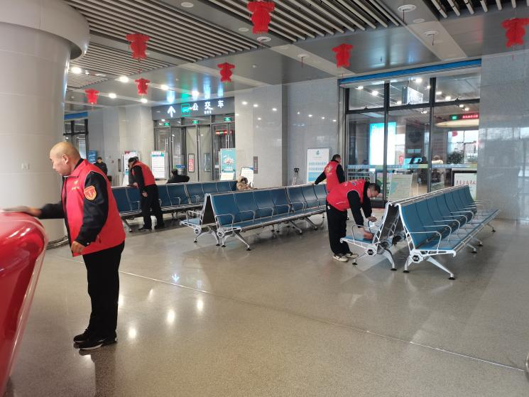 与此同时,在高铁公交枢纽站,身穿红色马甲的志愿者们分工明确、不停忙碌,有的负责维护现场秩序,有的则热心导乘、帮扶老弱。待人潮散去后,他们又一起将候车区座椅擦拭干净。他们的用心服务得到了来往乘客的一致称赞,在志愿服务站穿梭的“志愿红”成为一道亮丽的风景线。