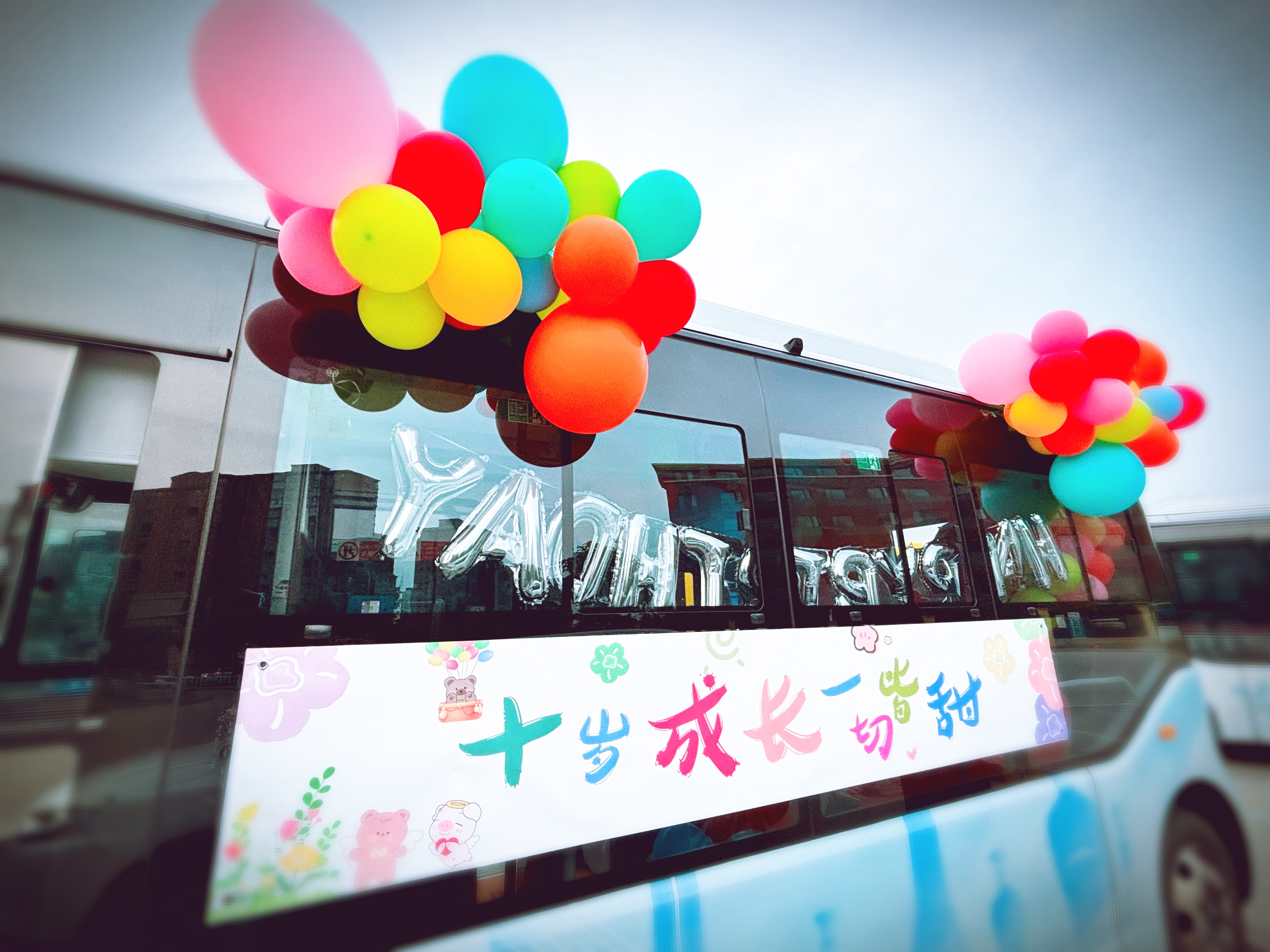 当天上午,过生日的悠悠满怀期待地和朋友们登上了“酒都小巴”,车身内外彩色烂漫的气球,精心准备的生日祝福语装点着这辆车牌号为“520”的公交车,孩子们都兴奋的手舞足蹈,一路拍照合影,留下了美好的回忆。
