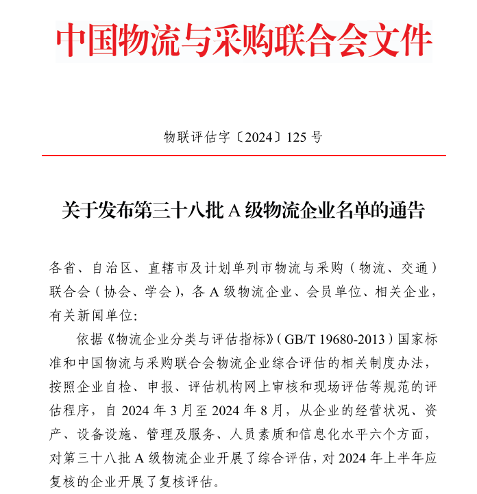 近日,中国物流与采购联合会发布了全国第三十八批A级物流企业名单,通湖物流园凭借优异的综合实力和服务水平,成功在两年的时间里从全国3A级物流企业跻身全国4A级物流企业的行列,也是该批次宿迁市唯一一家获得该项资质认定的物流企业。