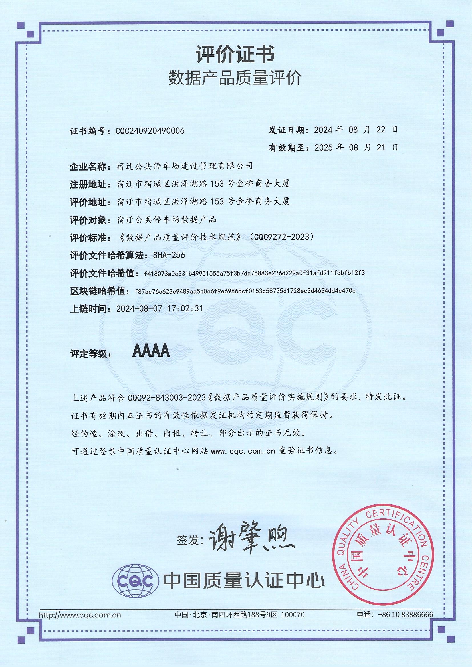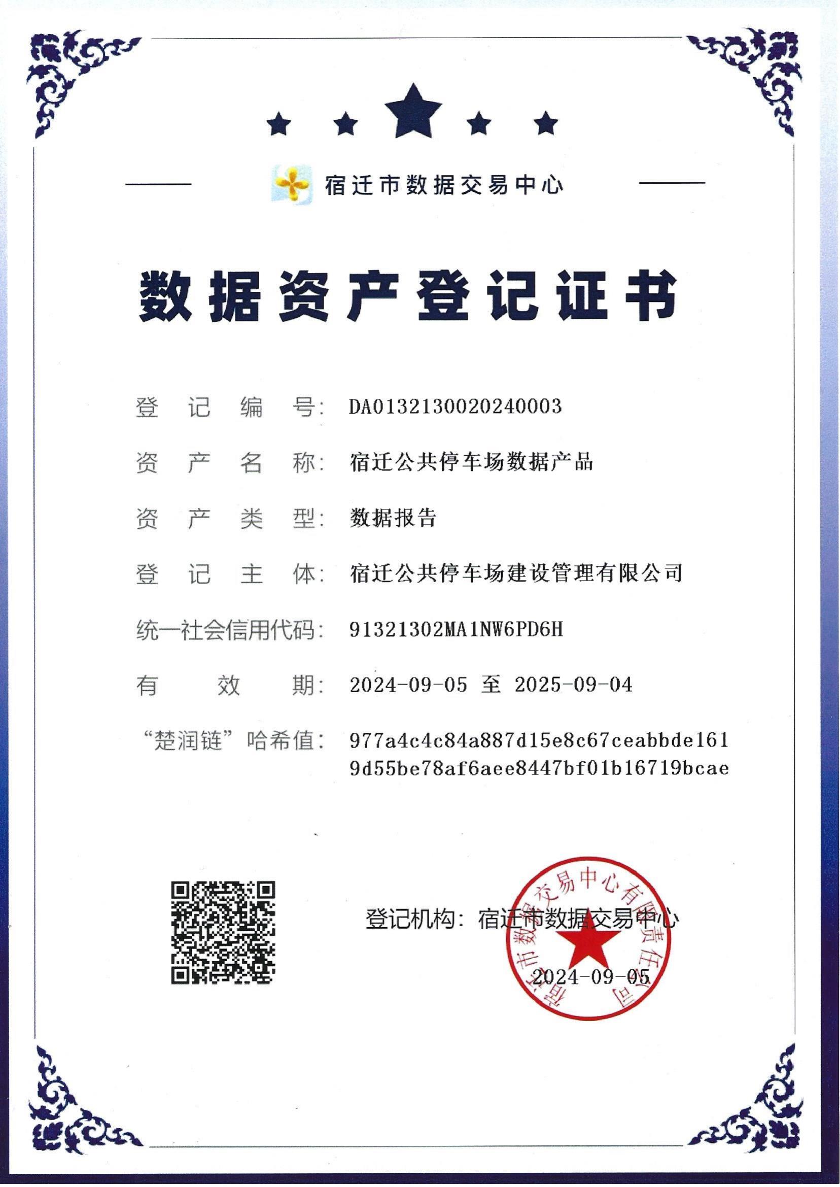 近日,宿迁交通集团所属企业宿迁市交通科技发展有限公司(原宿迁公共停车场建设管理有限公司,以下简称“交通科技”)完成全市首个数据资产入表工作,数据资产入账价值达400万元,评估价值逾2300万元。经中国质量认证中心认定,该数据产品质量等级为4A级,为全市首张4A级证书,也是全省迄今为止第二张4A级证书,标志着宿迁数据知识产权登记、保护工作取得了新突破。