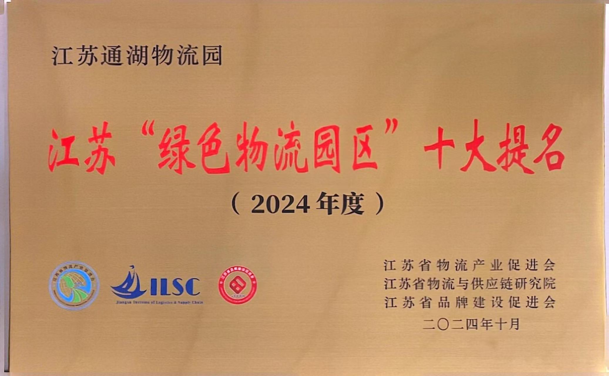 【通湖物流园】通湖物流园荣获2024年度江苏“绿色物流园区”十大提名