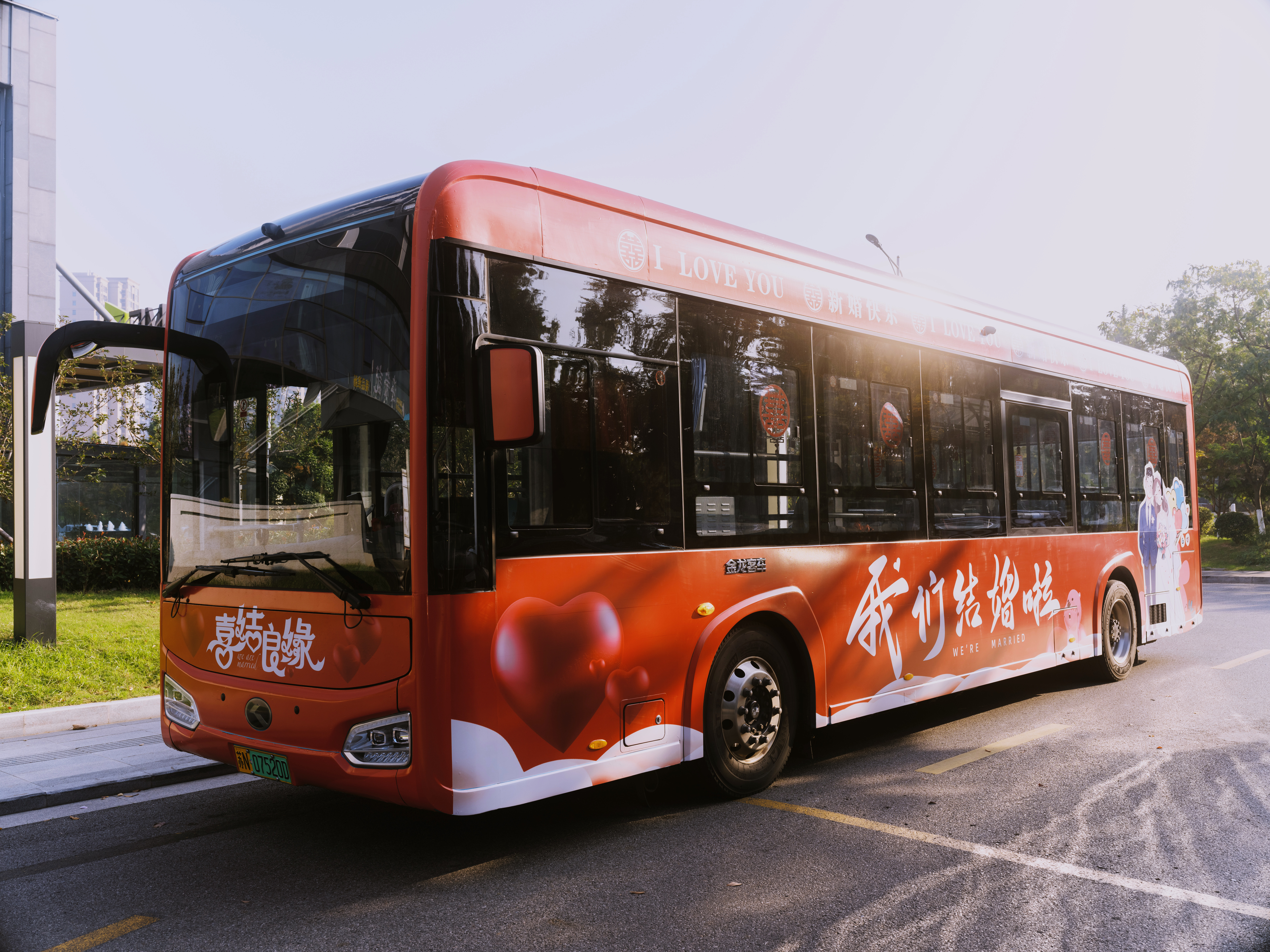近日,公交公司根据市民需求,进一步拓展“定制公交”服务,推出“公交+婚礼”个性化特色主题公交婚车,让公交车辆披红挂彩,载着新人开启低碳环保、浪漫时尚的迎亲之旅。
