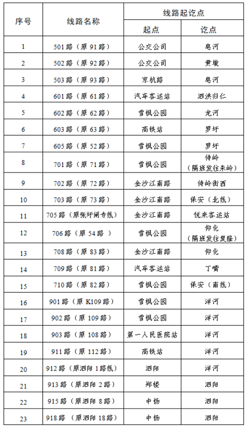 其余公交线路号保持不变。为避免市民误乘线路车辆,调整线路设置3个月过渡期,过渡期内车辆挡风玻璃处设置原线路号标志标识,请市民乘车时注意观察。