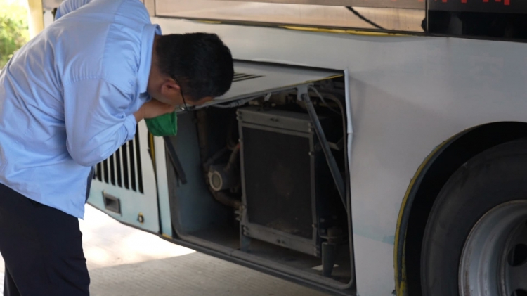 公交驾驶员 夏端兵:乘客在等车的时候有时会很焦躁,尤其是年纪偏大的乘客。当乘客上车以后,有的人会说,还是公交车里面凉快。听到这话,我们感到特别高兴。