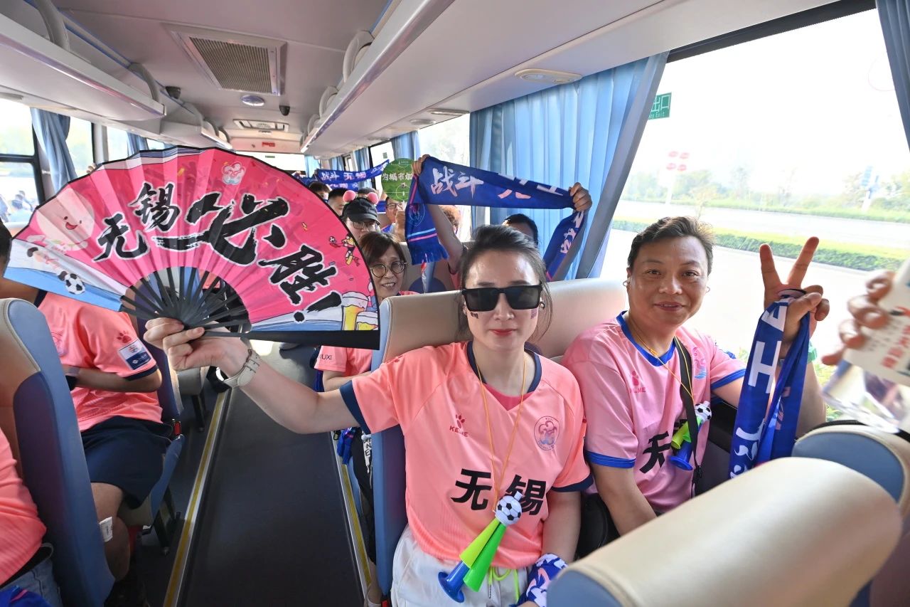 为方便无锡球迷前往现场观赛,宿迁交通集团在高铁宿迁站站前广场(上海路辅路)处,组织安排18辆定制公交,无缝接驳其直达比赛场地宿迁奥体中心,确保从“高铁下车”到“入场看球”的过程畅通无阻。