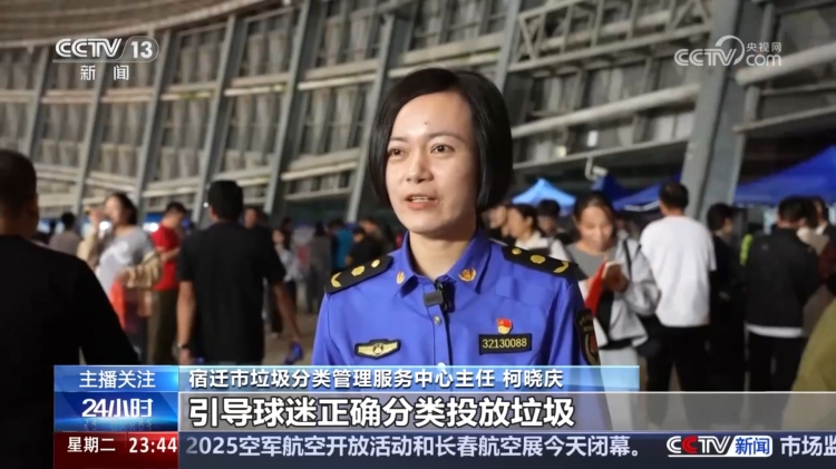 “我局联合体育馆运营管理方,在球场的出入口设置了160个分类垃圾桶,我们还通过场内的大屏、横幅标语、志愿者宣传等形式,引导球迷正确分类投放垃圾。在比赛结束1小时后,场内的垃圾能够清运完毕,实现人走场净。”宿迁市垃圾分类管理服务中心主任柯晓庆说。