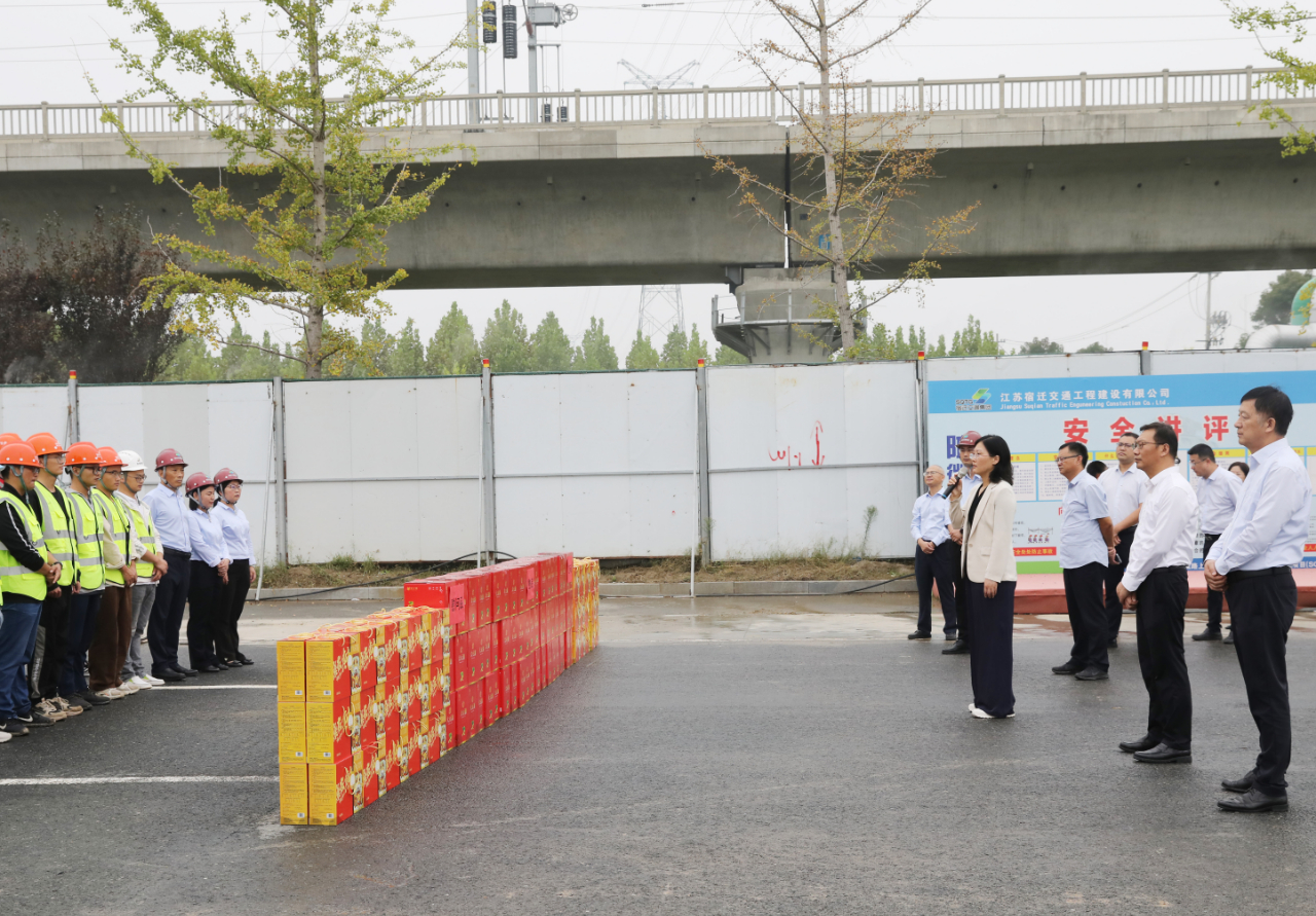 在中秋国庆“双节”来临之际,集团领导班子成员还看望慰问了坚守在工作岗位的建设者,为他们提前送上节日祝福和慰问品,感谢他们为项目建设作出的贡献,希望大家继续发扬优良作风,求真务实、埋头苦干、克难攻坚,用实际行动为宿迁城市交通建设贡献力量。