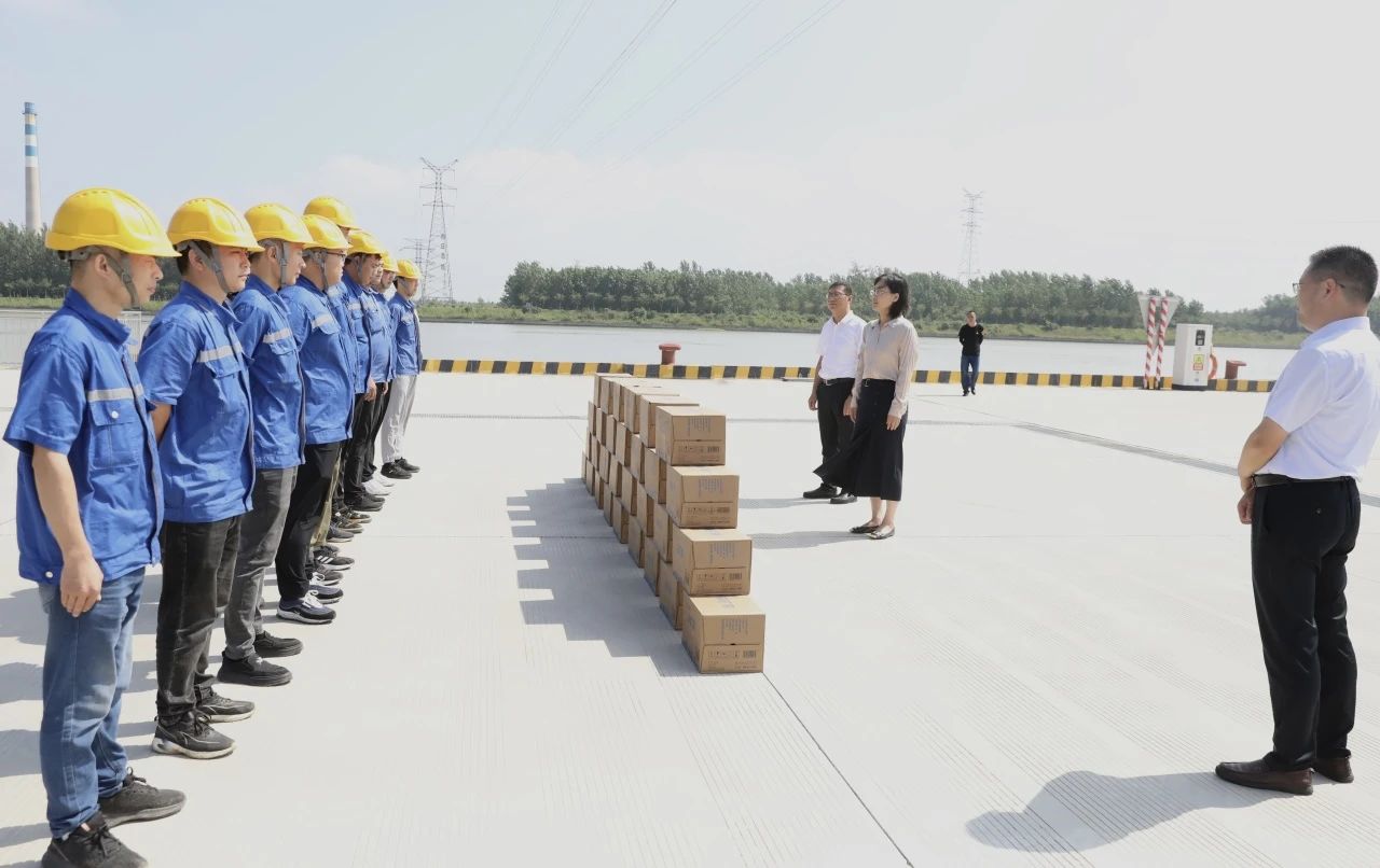 运河宿迁港三期码头现场也是一派繁忙景象。慰问组一行再三叮嘱一线操作人员时刻注意作业安全,严格遵守操作规程,做好防暑降温措施,合理安排作息时间,为集团高质量发展贡献港口力量。