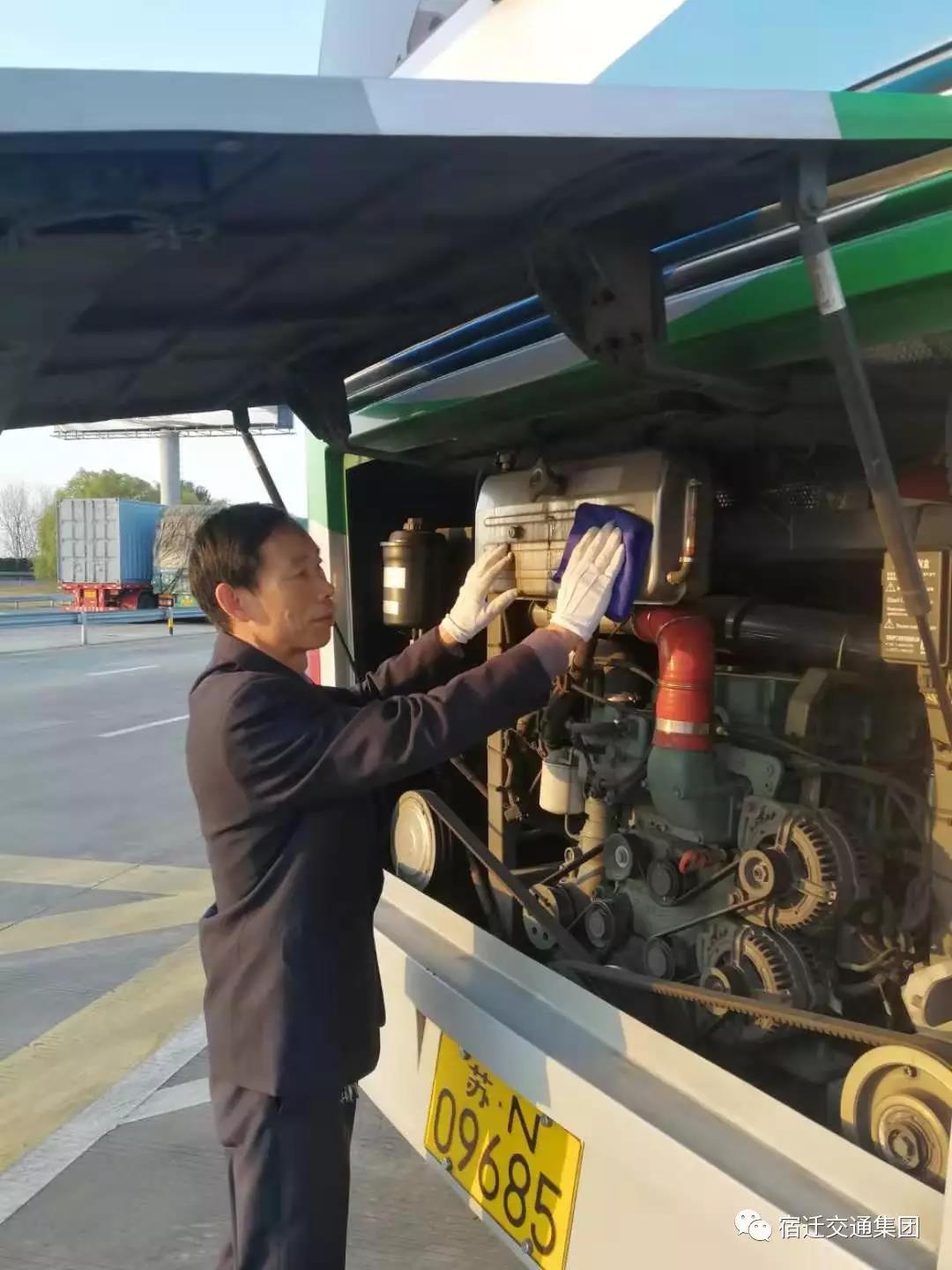 车辆达到南通的站点后,殷建华利用短暂的休息时间,打扫车辆卫生、检查车辆性能。