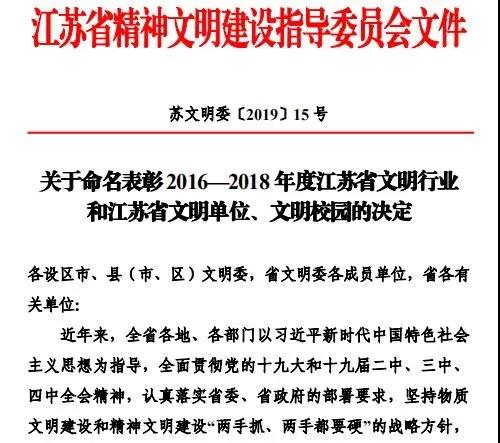 荣获“江苏省文明单位”称号