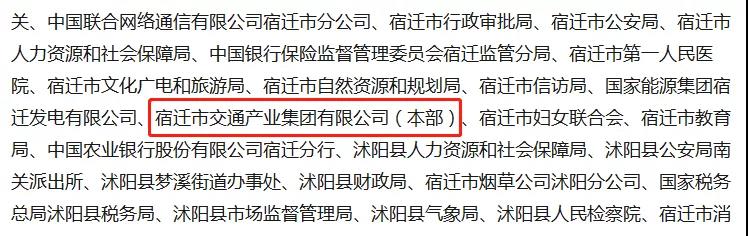 和文明单位的名单 宿迁市交通产业集团有限公司(本部) 荣获“江苏省文明单位”称号