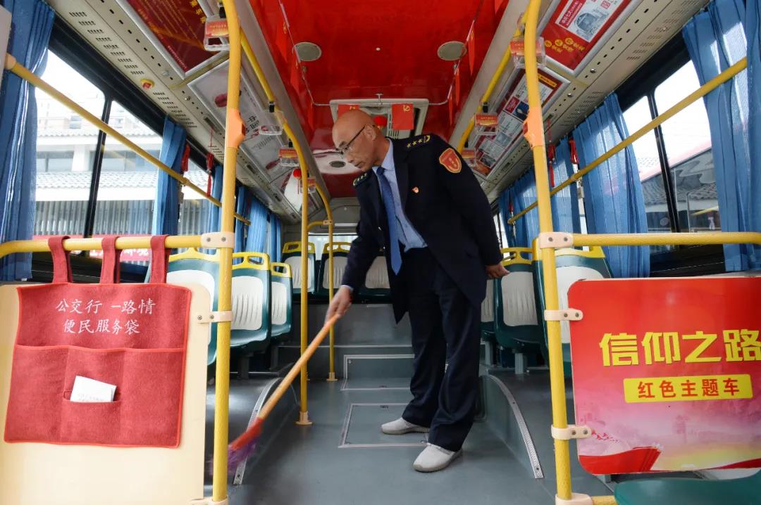 除了出车前、下班后按照规定打扫车辆,到了调度站也不闲着,确保自己的车辆比别人的干净、比别人的亮堂。