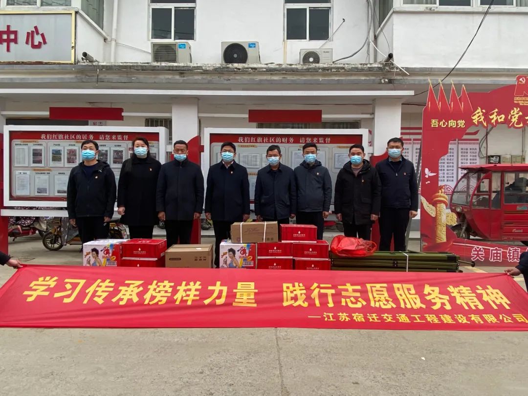 ??????? 期间,宿迁交建党总支积极主动对接共建社区——宿豫区关庙镇红旗社区党支部,在该支部的统一安排下,党员志愿者挺身而出、冲锋在前,为结对社区送去1200支口罩、4箱84消毒液、10箱纯净水等防疫物资,积极帮助社区工作者开展体温测量、物资分送等志愿服务工作,联手筑牢疫情防控“红色堡垒”。