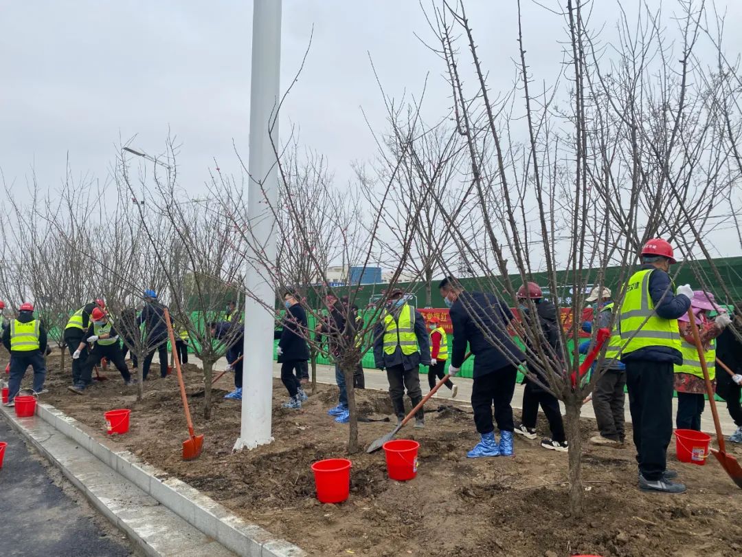 3月18日,集团公司机关党支部、高铁公司党支部、徐淮路改造工程临时党支部在徐淮路改造工程施工现场开展“志愿服务党旗红 项目一线添新绿”义务植树活动。