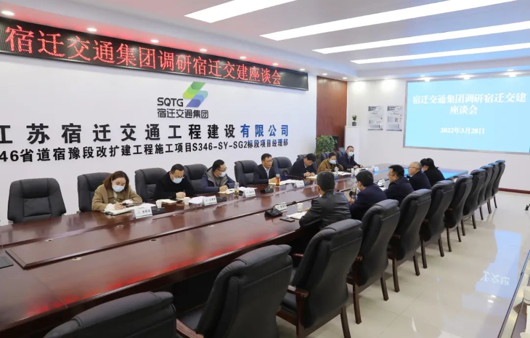 3月28日下午,宿迁交通集团党委书记、副董事长邵岩,副总经理黄雪林一行赴宿迁交建调研,详细了解企业发展情况,分析当前面临的形势,认真谋划2022年重点工作。