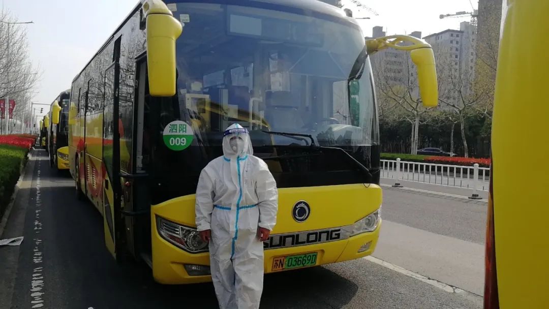 4月2日晚10点30分,公交公司20辆定制公交整齐地停放在宿迁泽达职业技术学院南侧待命。为了迅速行动,20多名驾驶员坚守一线、枕戈待旦,连夜值守、和衣而眠,直至4月4日下午2点35分接到指令后方才撤离。