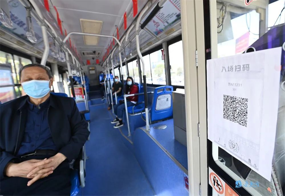 4月11日起,城市公交、城乡公交、出租车、网约车等在严格落实防疫措施基础上恢复运营。公交公司对1300余辆公交车持续全面消杀。市民可在体温测量正常、扫描“宿康宝场所码”、出示“苏康码”的前提下,乘坐公共交通。