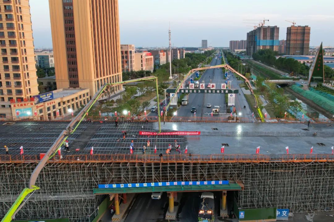 北京路快速化改造工程2标段宿豫区施工线路长2.7公里,共12联主线现浇箱梁,本次浇筑的最后一联顶板共用混凝土880立方米,历时11小时。建成后的高架桥梁将有效缓解周边区域交通压力,对带动沿线经济社会发展具有重要意义。