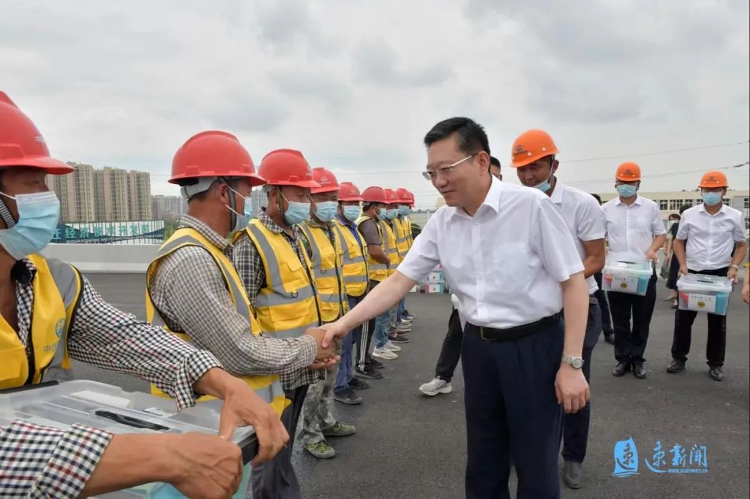 7月7日,市委副书记、统战部部长杭海至北京路快速化改造工程建设现场,开展夏季安康“三送”活动,慰问一线工作者。市人大常委会副主任、市总工会主席徐勤忠参加慰问。市政协副主席、宿迁交通集团总经理史明霞,集团党委书记、副董事长邵岩等陪同慰问。