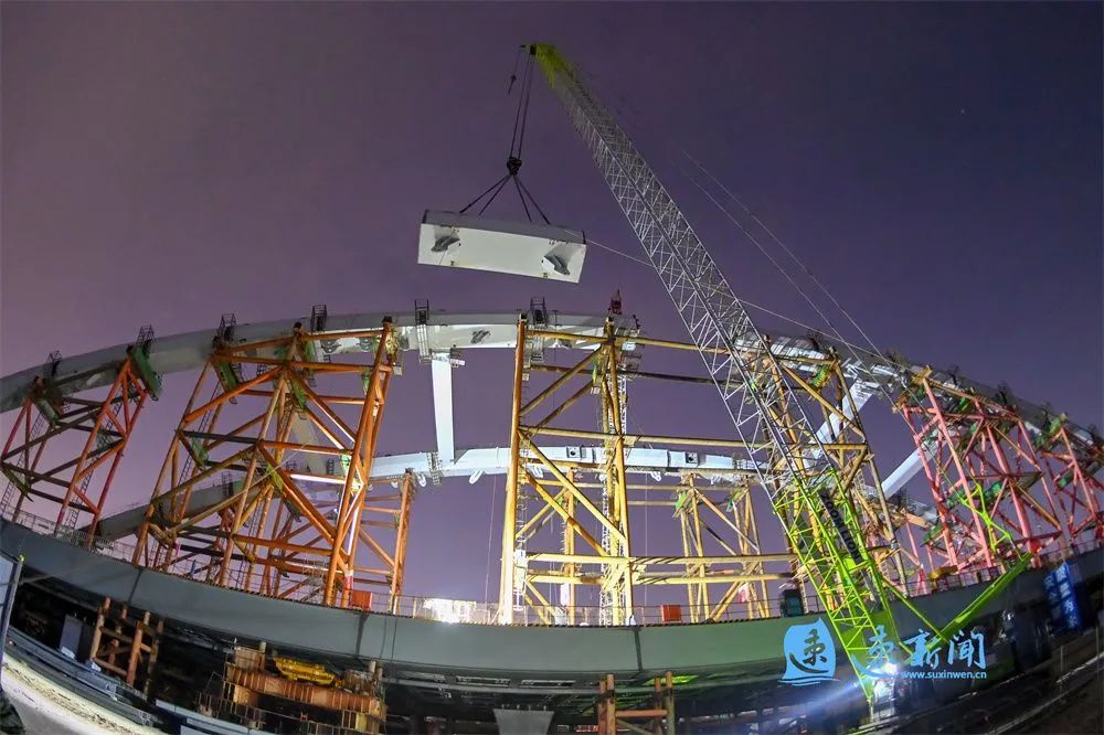 ??????? 7月4号凌晨3点,北京路跨京杭大运河特大桥拱肋顺利合龙。