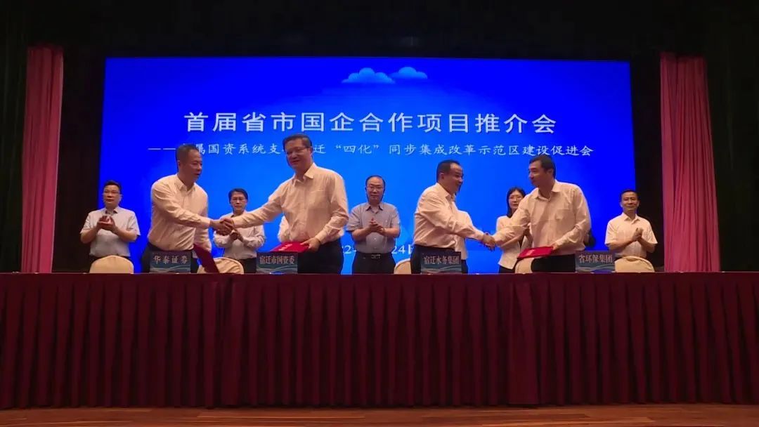 5月24日,首届省市国企合作项目推介会——省属国资系统支持宿迁“四化”同步集成改革示范区建设促进会在南京成功举办。部分省属企业与宿迁国企现场签订9项合作协议,省国资委一级巡视员彭向峰,宿迁市委常委、常务副市长张明康分别代表省国资委、市政府讲话,市政协副主席、集团总经理史明霞,集团副总经理黄雪林参加活动。