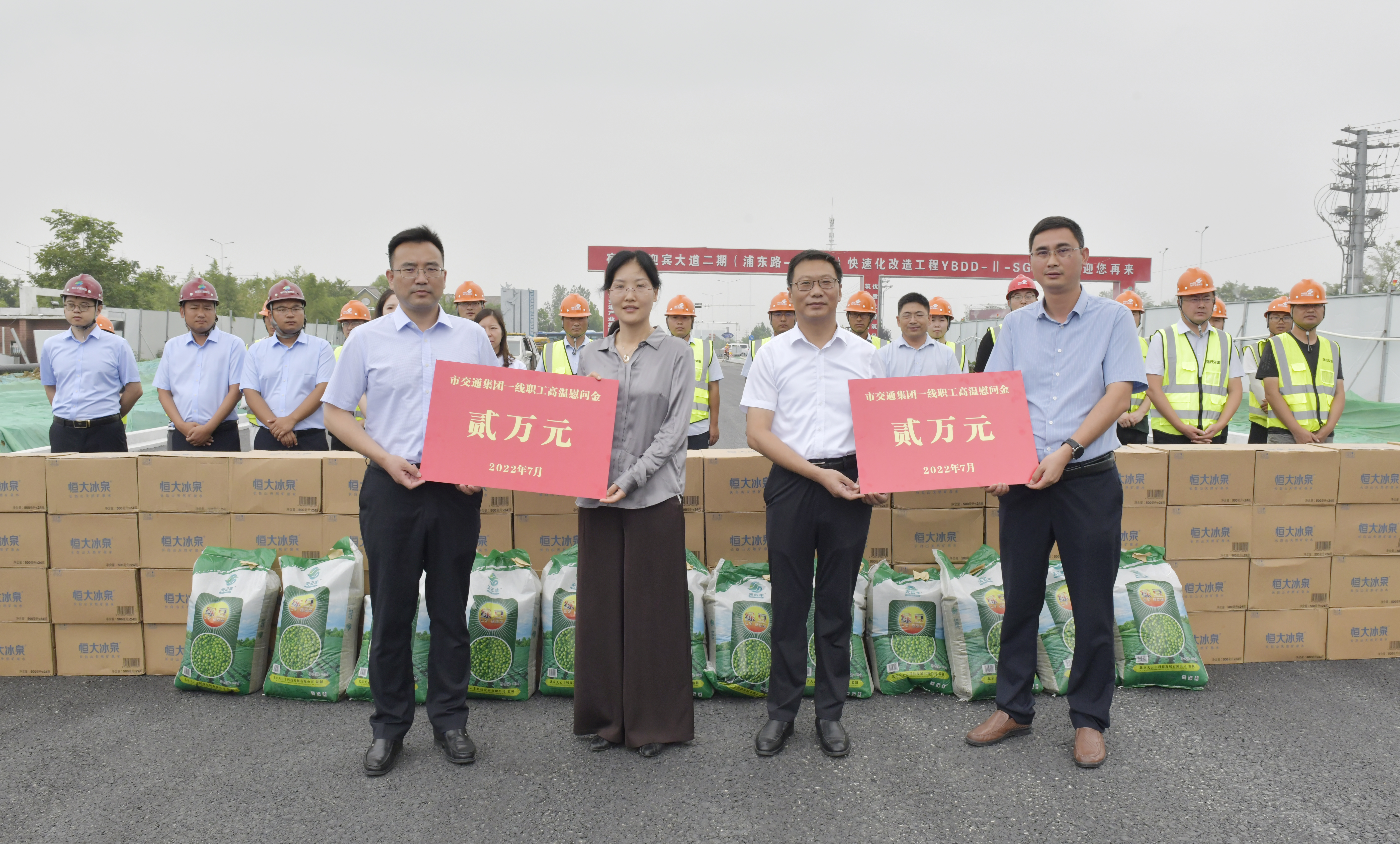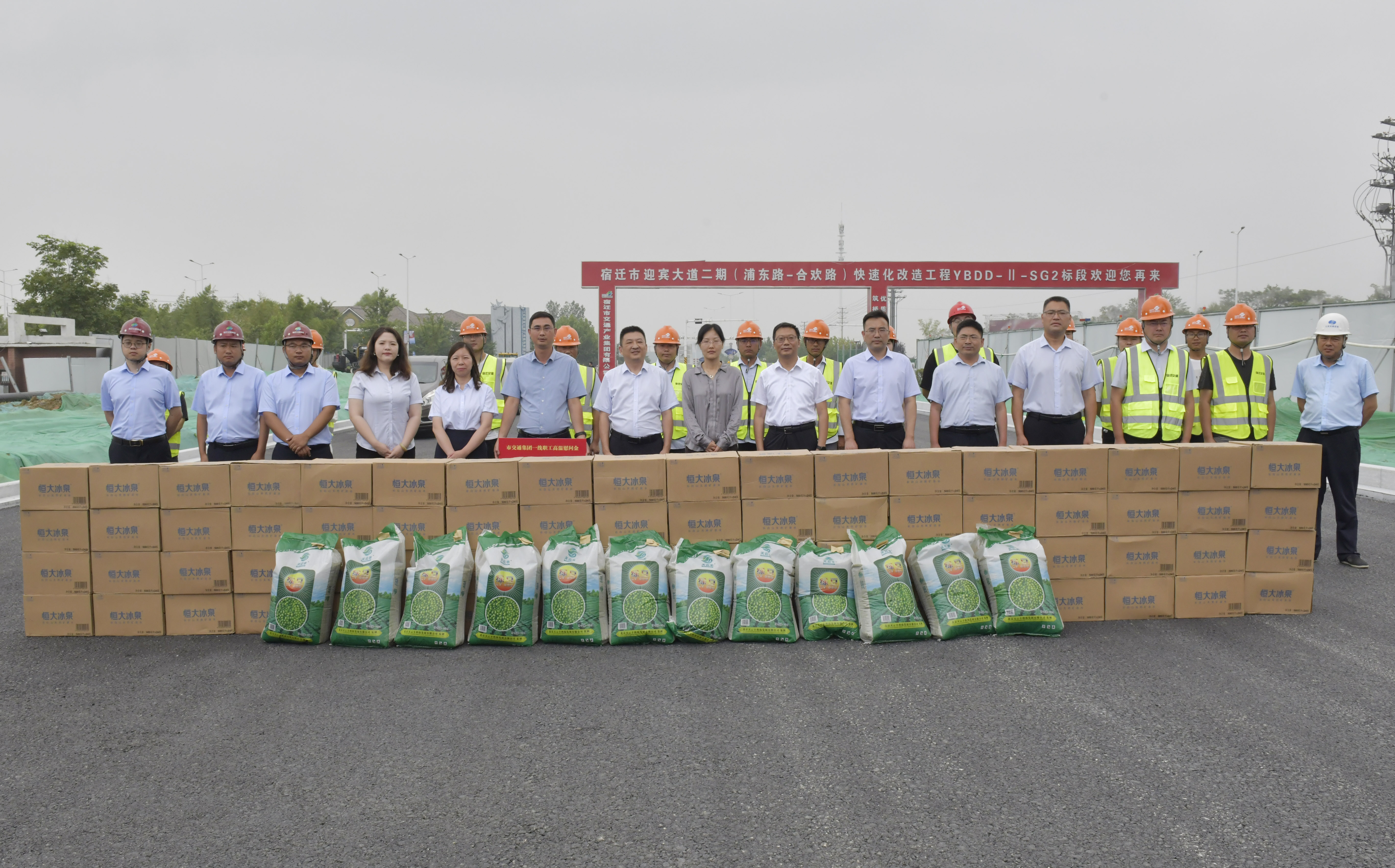 市政协副主席、宿迁交通集团总经理史明霞,集团党委书记、副董事长卲岩,副总经理罗东志一行先后到迎宾大道二期快速化改造工程2标段施工现场、雪枫公园公交枢纽站、金鹰北侧新型户外广告设施项目施工现场,看望慰问一线职工,为他们送去防暑降温用品及慰问金,并通过他们向全集团奋战在高温一线的广大职工表示崇高敬意、致以诚挚问候,感谢大家为城市发展和保障民生作出的积极贡献。慰问期间,集团主要领导还详细了解了项目建设进度,仔细询问了职工工作时间安排、安全生产工作落实情况,叮嘱企业负责人在高标准推进各项工作的同时,要切实做好防暑降温工作,全力守护好职工生命安全和身体健康。