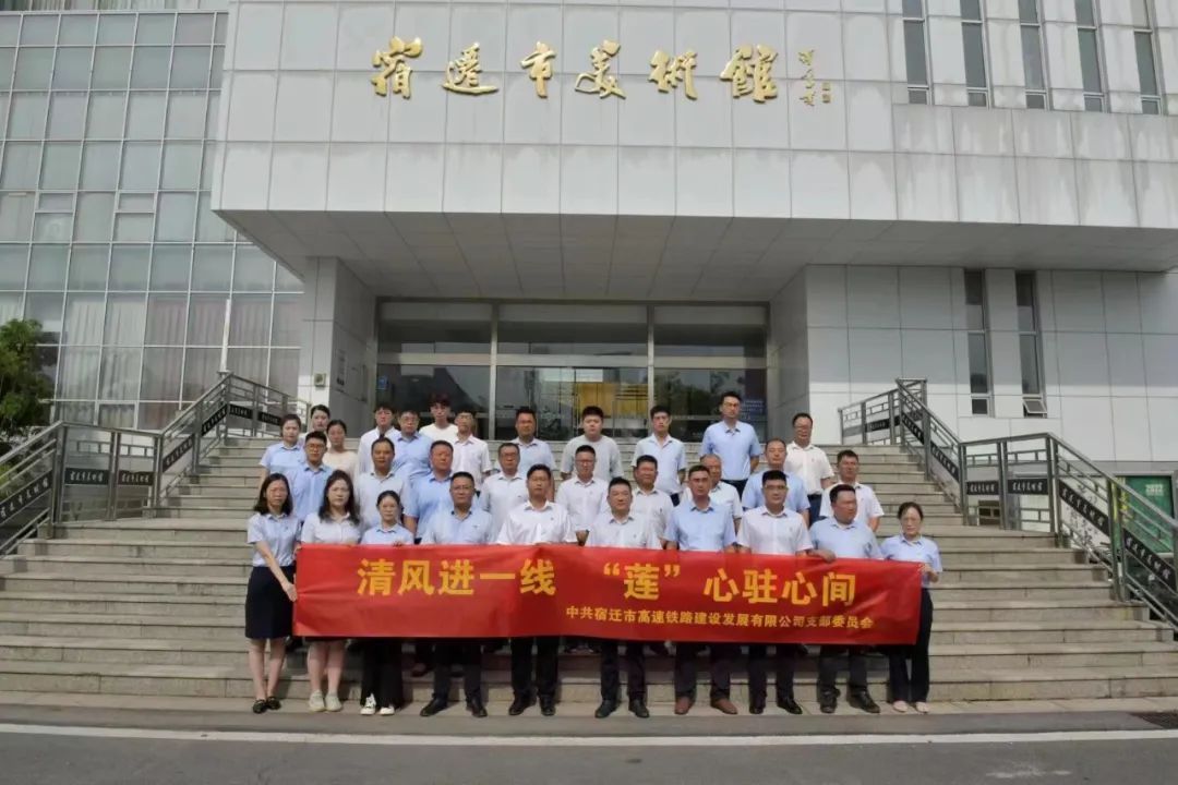 ??????? 8月19日上午,高铁公司党支部开展“清风进一线 ‘莲’心驻心间”活动,支部全体党员及各项目部经理、书记、党建宣传专员共同前往市美术馆参观“莲”心永驻·宿迁市2022年廉洁文化漫画作品展。