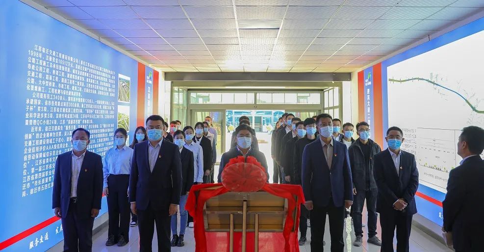 10月20日,宿迁交建“项目一线职工之家”党建展厅揭牌仪式在迎宾大道二期快速化改造工程2标段项目部举行。