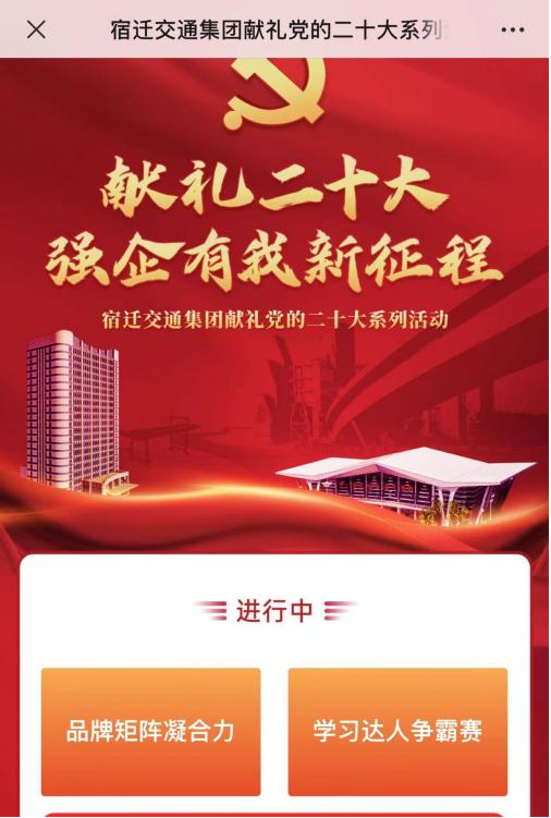 1.关注宿迁交通集团公众号,首页点击服务,在集团风采一栏找到“献礼二十大”。