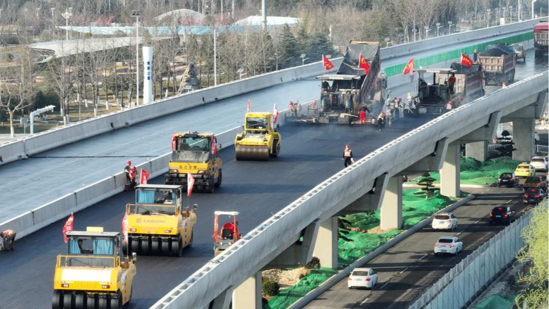 “目前,我们的主要任务是主线沥青面层摊铺、人行道铺装作业等,工期紧任务重,但既有断面无法保障连续作业,项目部会同相关工序人员通过网格化间断施工、增加机械台套和增加管理技术人员的方法,大大加快了施工进度,也为项目整体工期的完成提供了保障。”施工现场,迎宾大道二期快速化改造工程2标段项目部项目经理王金说。他的身后,一派大干快上、热火朝天的建设繁荣景象!
