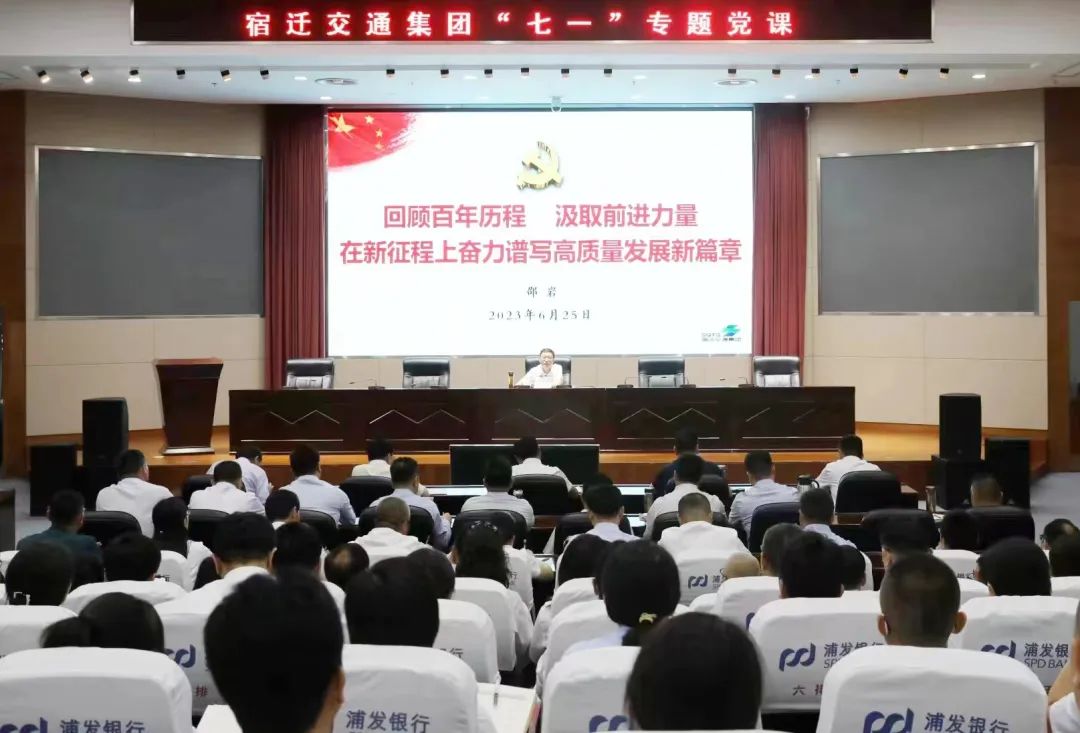 根据宿迁交通集团党委安排部署,6月25日下午,集团党委书记、副董事长邵岩结合学习习近平新时代中国特色社会主义思想和党的二十大精神的收获与体会、感悟与思考,以《回顾百年历程,汲取前进力量,在新征程上奋力谱写高质量发展新篇章》为题,为党员干部职工讲授“七一”专题党课。