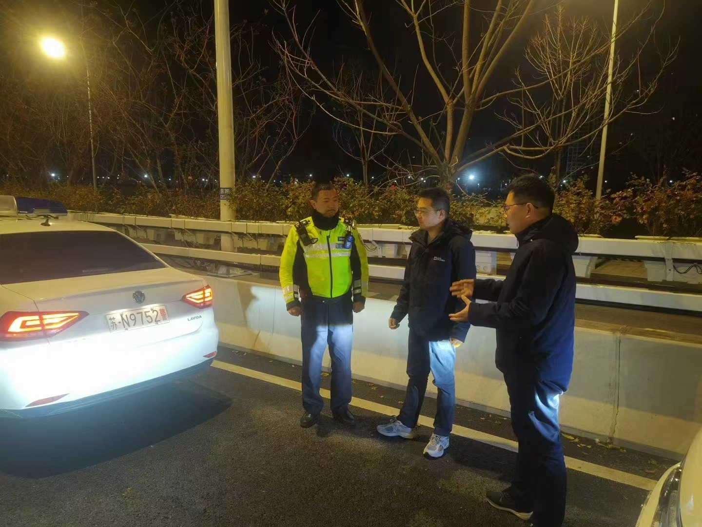 检查运河三号桥是否积水,检查北京路与酒都路互通亮化是否正常,检查上海路泵站排水是否正常,直到雨停了他才放心回家。