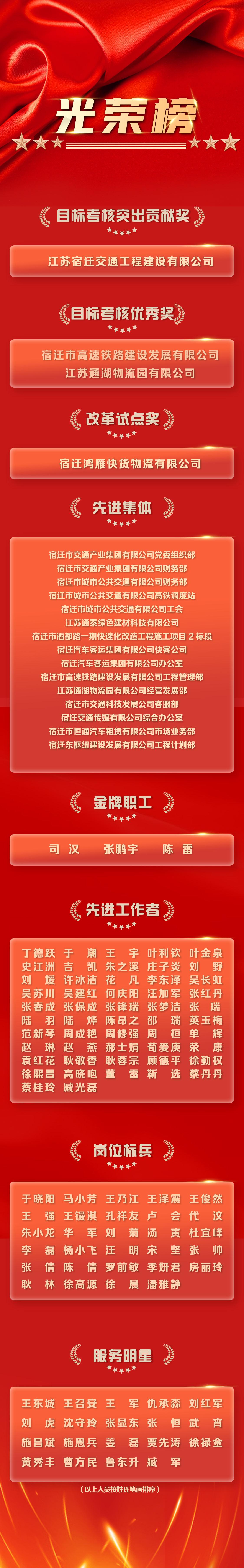 光荣榜丨宿迁交通集团这些集体和个人受表彰,祝贺!