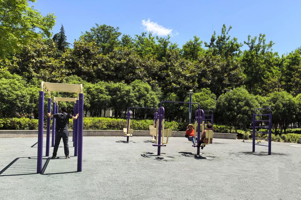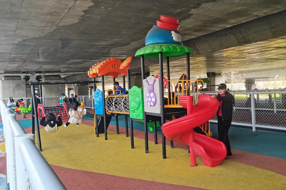 迎宾大道绿道全长8公里,通过串联小区、街角广场、绿地公园、桥下空间等地块,实现慢行系统与线性空间的有效整合。绿道在串联道路两侧原有绿地空间的基础上,合理增加了小游园、主题公园、活动广场、智慧健身等功能性场地,如新建各类休闲健身场地8处、乐享驿站6座、智慧健身步道1.5公里,新增休闲座椅、景观灯、健身器材、儿童游乐设施、垃圾桶、无障碍设施等配套便民设施,沿线增加微山花园、绣球花园、碉堡花园等多个游园节点,打造满足全龄活动的“乐享游园”。
