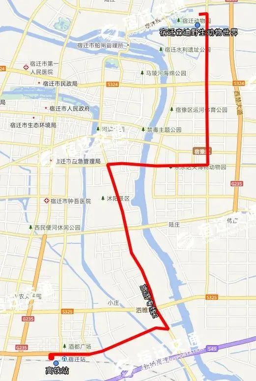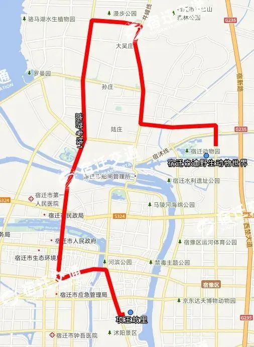 2、延伸111路(原停在尚阳城路边)和308路(原停在红星凯盛),沿江山大道进入宿迁森迪野生动物世界。